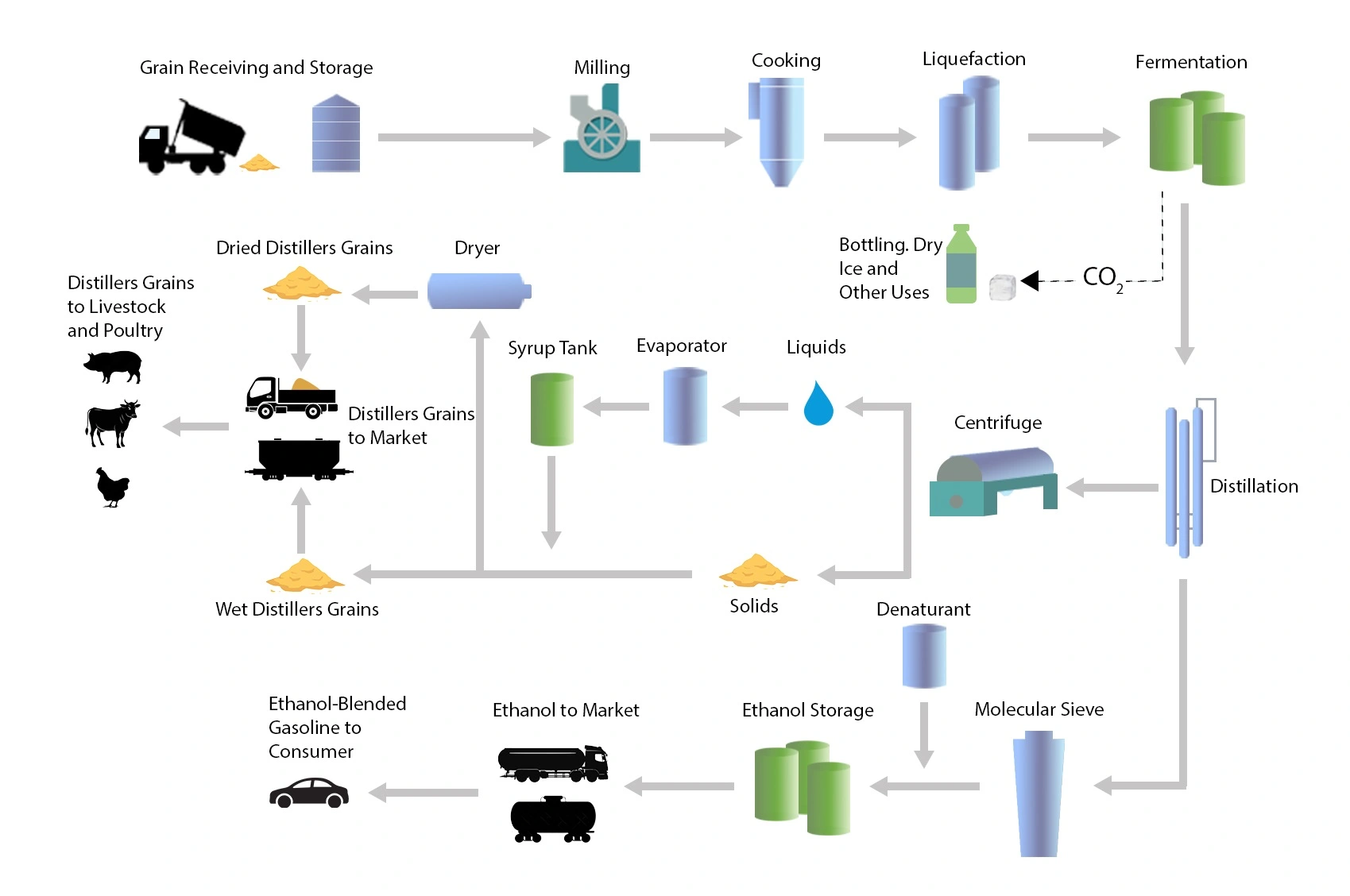 As a natural Coproduct of fermentation, we capture and purify carbon dioxide gas for various industrial applications, including food and beverage carbonation, welding, and medical uses. Our high-purity CO2 meets stringent industry standards, ensuring reliability.